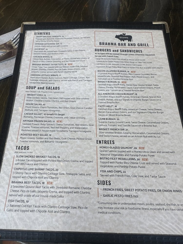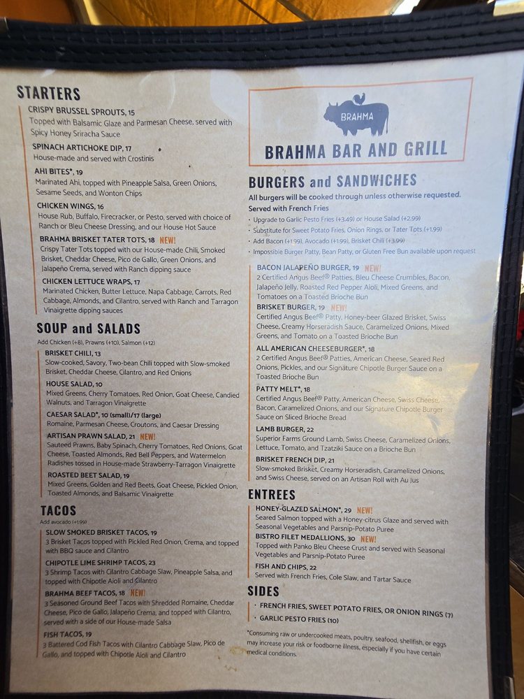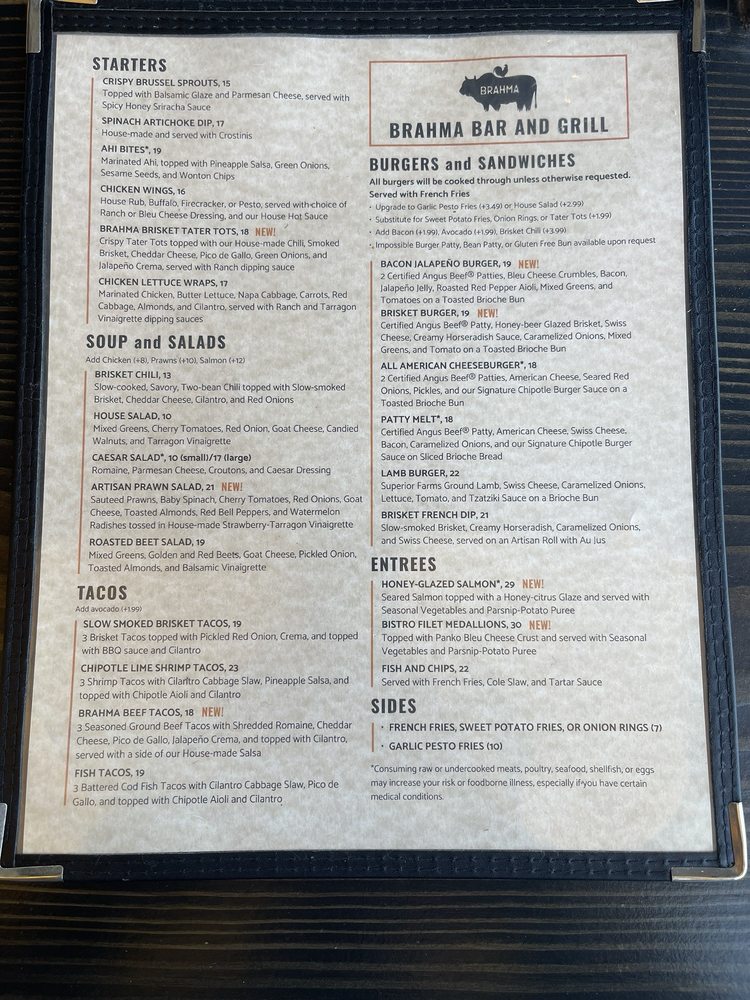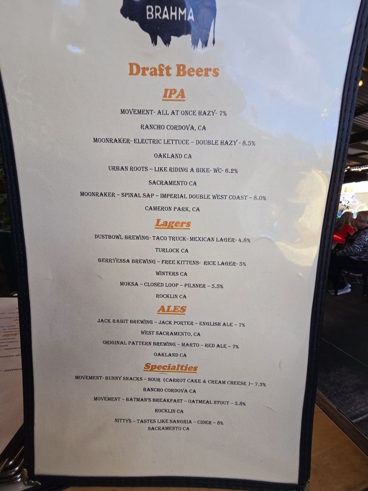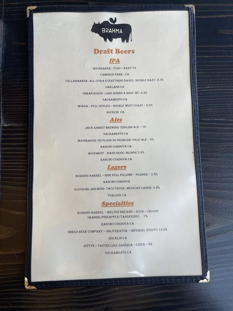 Welcome to Brahma Bar and Grill, a standout destination for food enthusiasts and socialites in the heart of Fair Oaks, California. Nestled at 10239 Fair Oaks Blvd Ste D, this vibrant eatery beautifully merges the relaxed charm of a bar with the culinary creativity of New American cuisine. With an extensive menu offering everything from mouthwatering brisket tacos to delightful vegetarian burgers, Brahma promises a taste experience that caters to every palate.